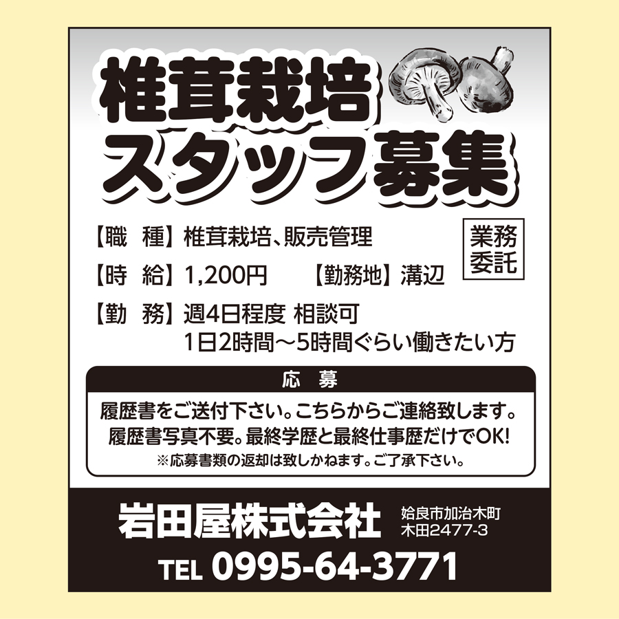 時間: 週4日程度 相談可 1日2時間〜5時間ぐらい働きたい方