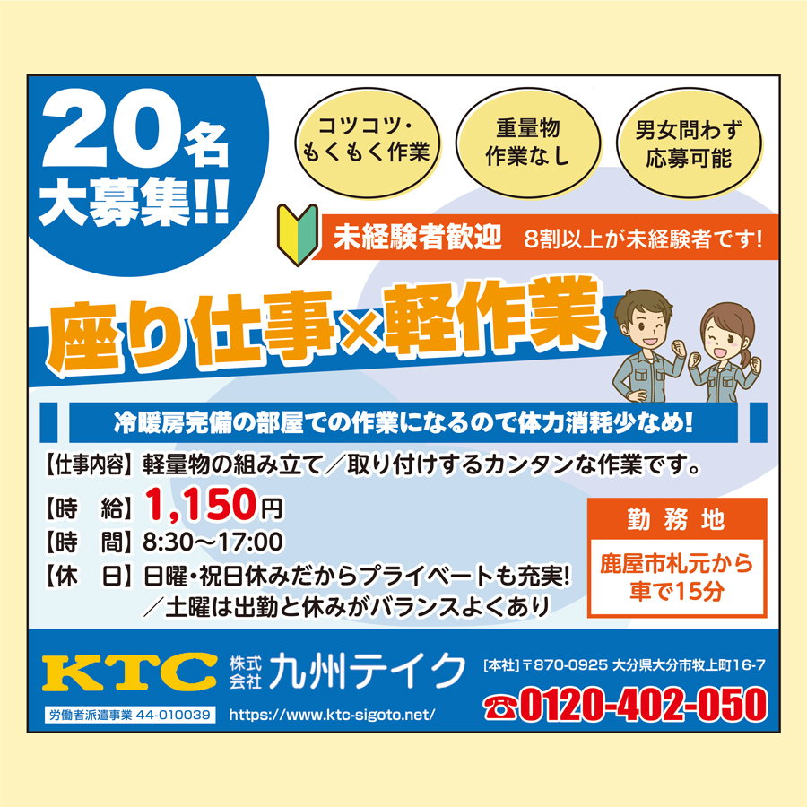 職種: 軽量物の組み立て/取り付けするカンタンなお仕事です