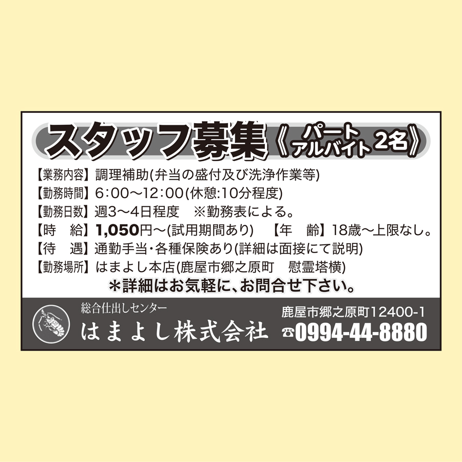 職種: 調理補助(弁当の盛付及び洗浄作業等)