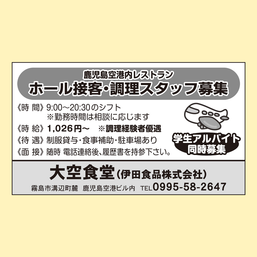 住所: 霧島市溝辺町麓 鹿児島空港ビル内