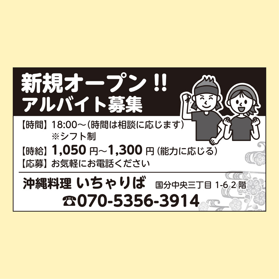 時間: 16:30〜23:00(休憩 0.5h) ※週5日勤務