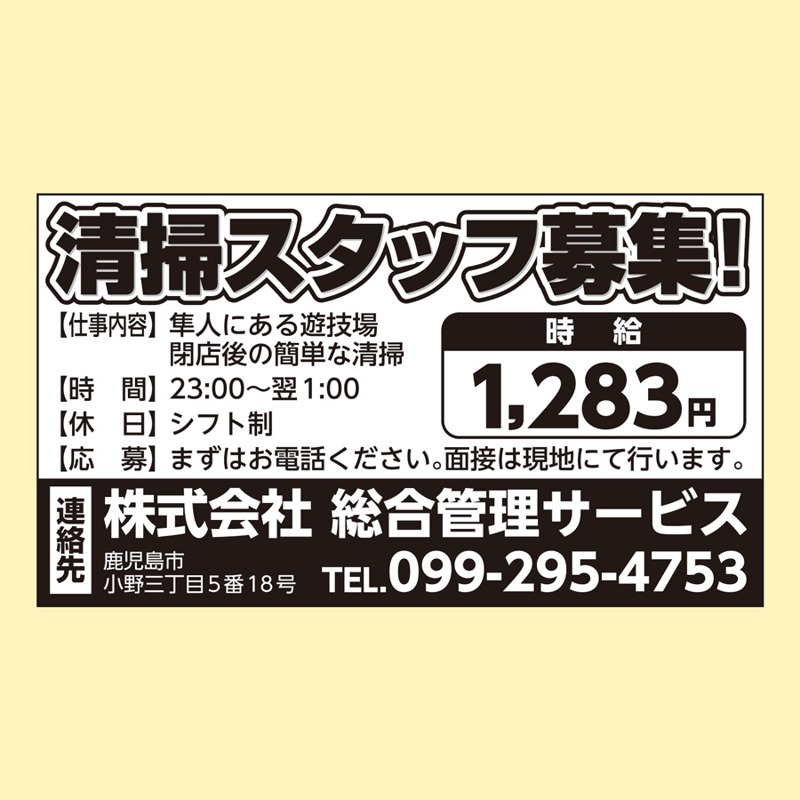 住所: 鹿児島県霧島市隼人町神宮4丁目10番49-10 ポスティング株式会社内