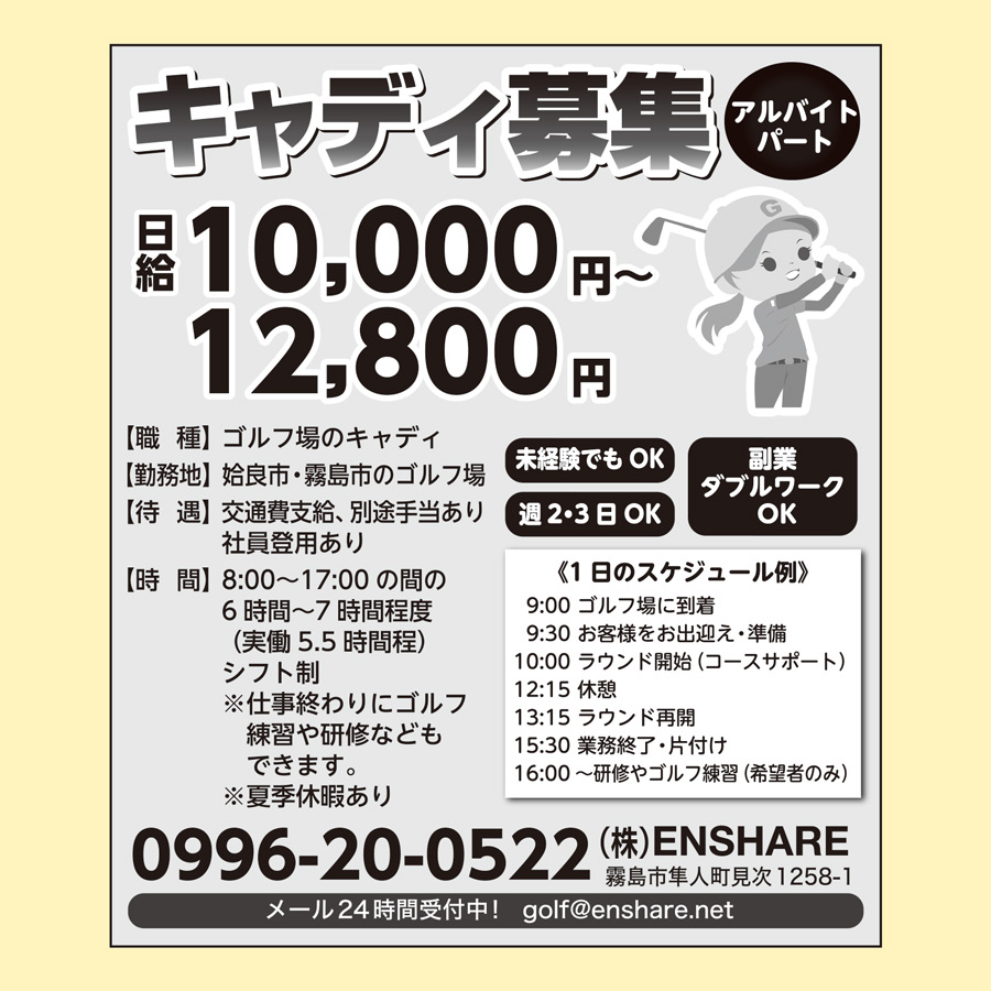 住所: 〈勤務地〉 霧島市内のゴルフ場(移動手段のある方)