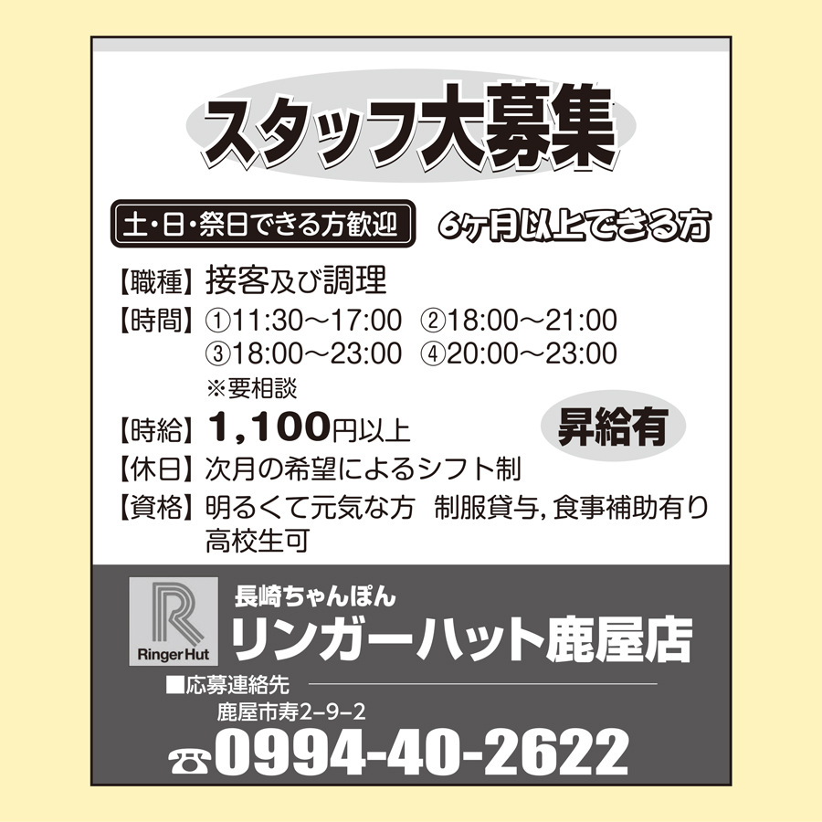 職種: ホール・キッチンスタッフ