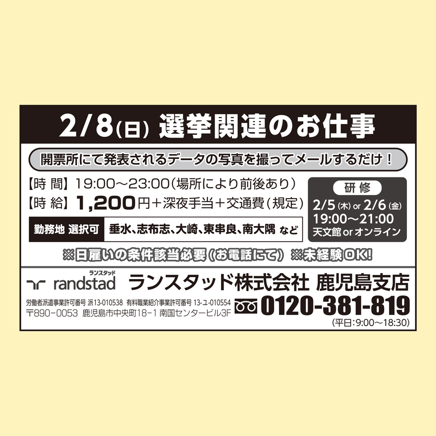職種: 2/8(日)選挙関連のお仕事