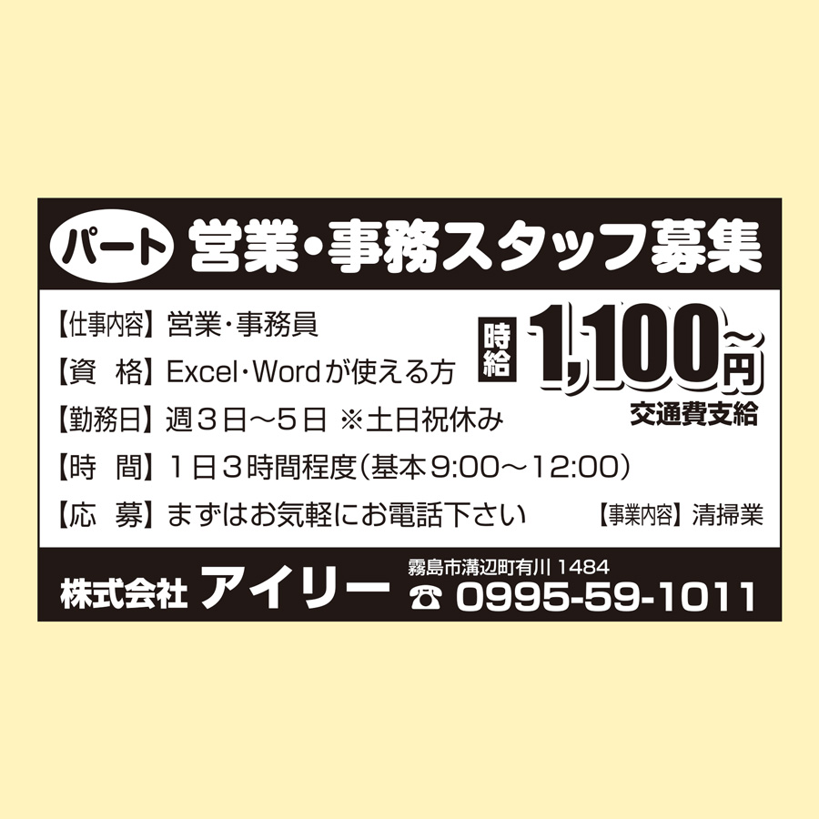 給与: 手取18万円以上(時給 1,100円〜1,200円)