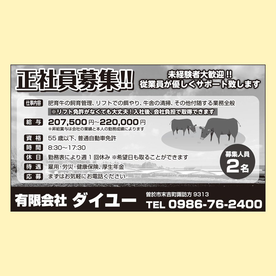 職種: 肥育牛の飼育管理、リフトでの餌やり、牛舎の清掃、その他付随する業務全般
