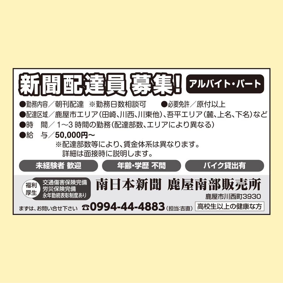 給与: 50,000円~ ※配達部数等により、賃金体系は異なります。