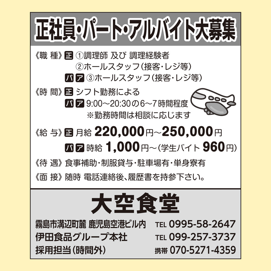 住所: 霧島市溝辺町麓 鹿児島空港ビル内