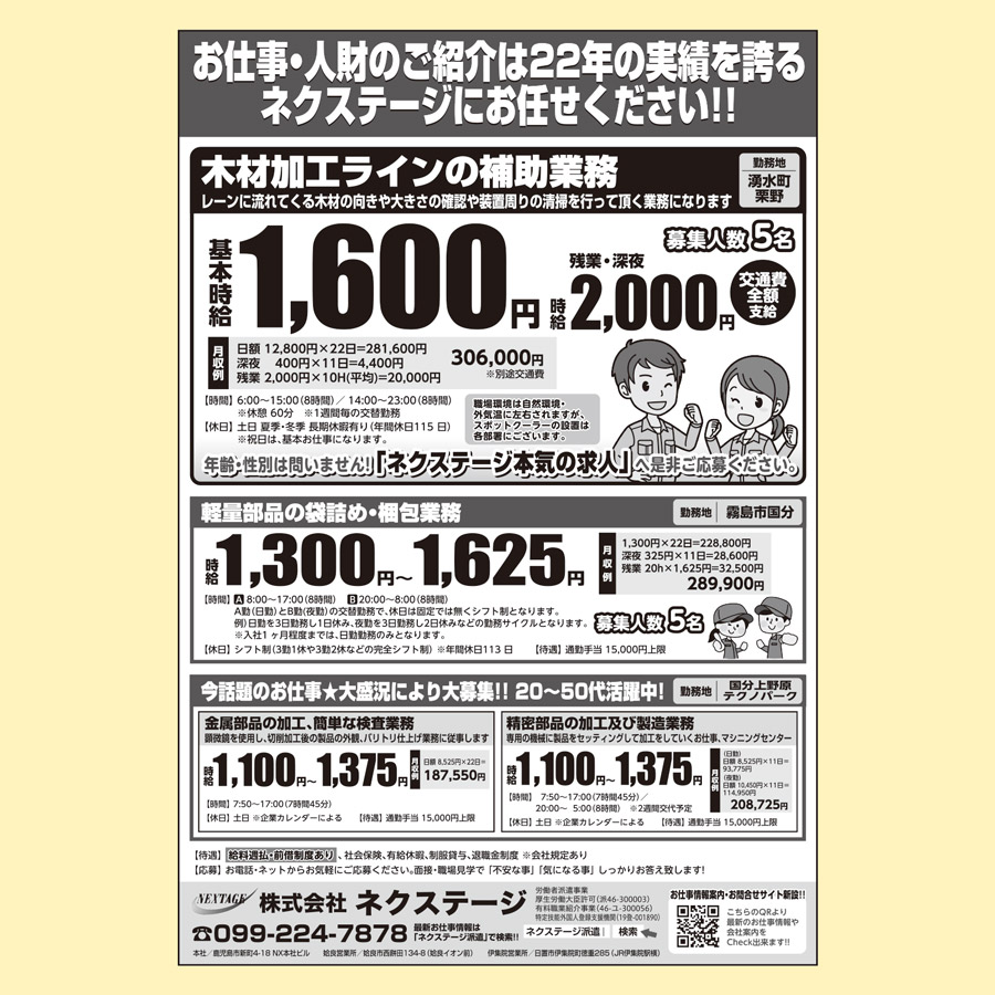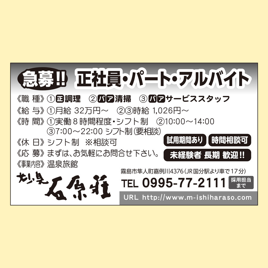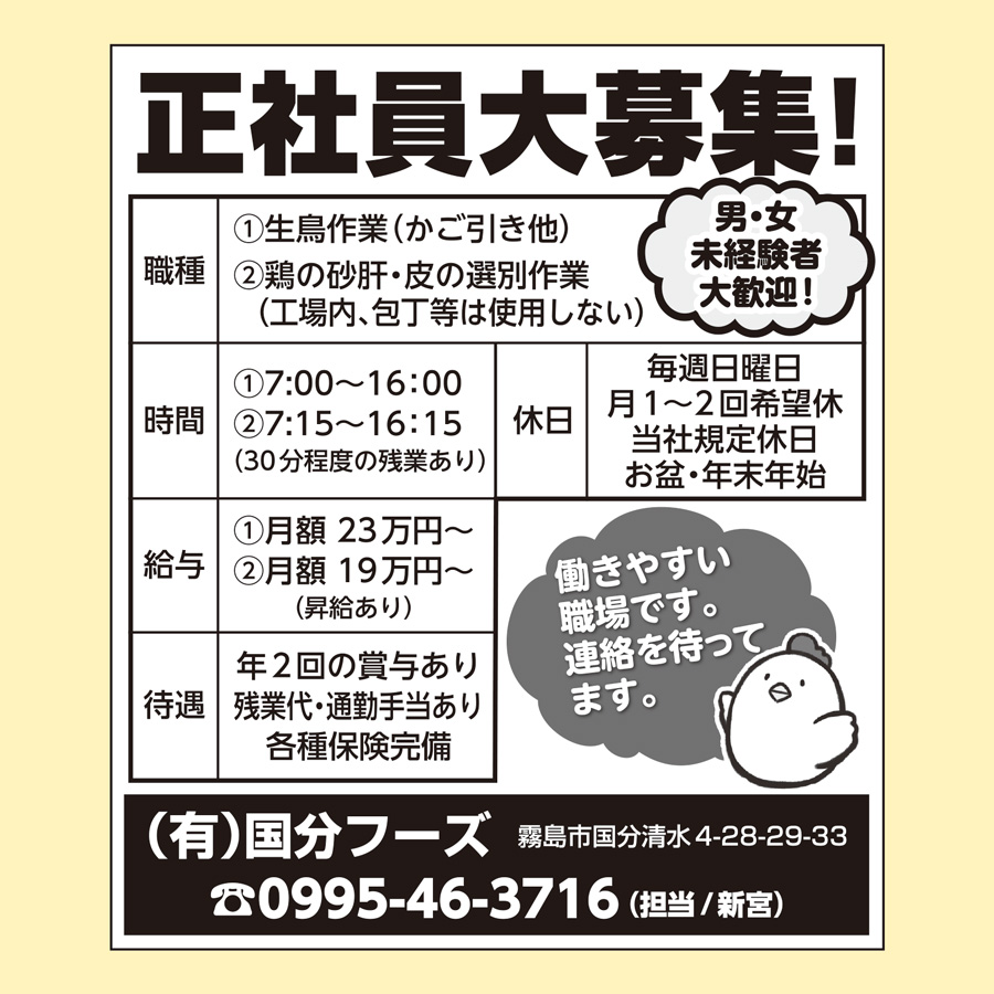 住所: 勤務地:湧水町栗野、霧島市国分、国分上野原テクノパーク