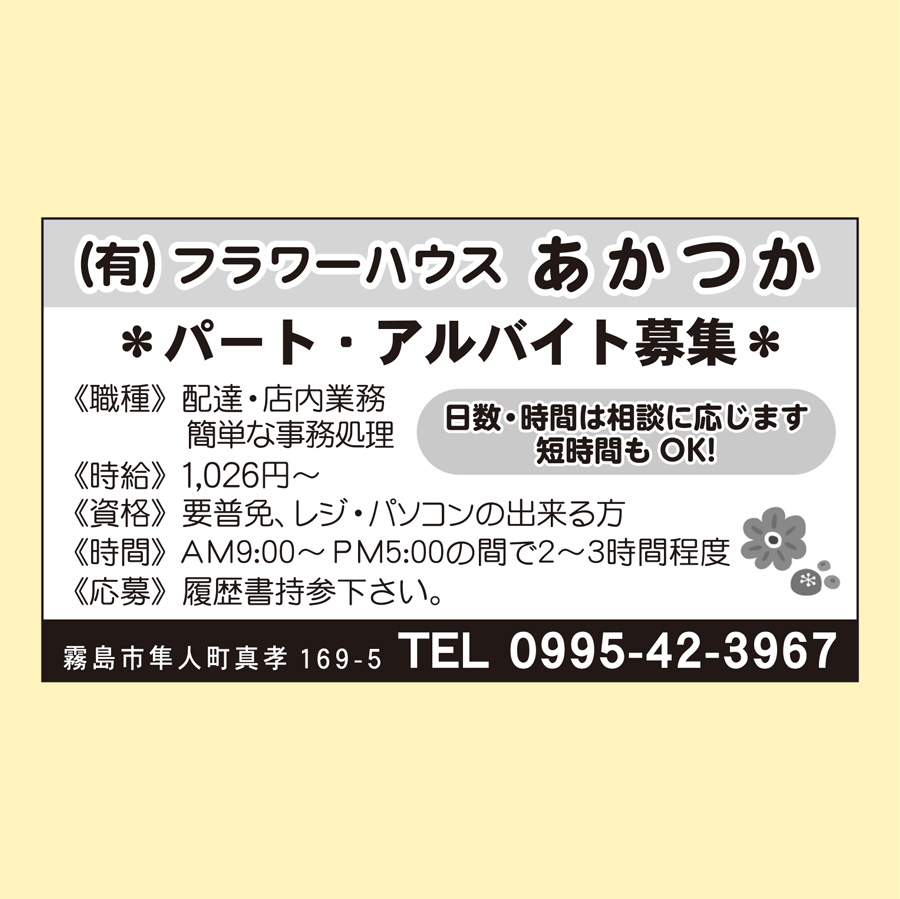 職種: 配達・店内業務・簡単な事務処理