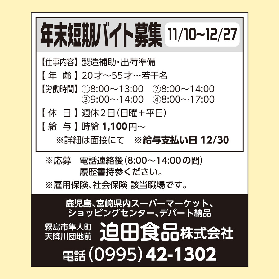 住所: 鹿児島県曽於市大隅町岩川5515番地