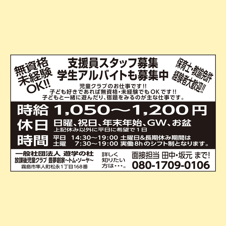 給与: 時給 [平日] 1,060円 [日曜] 1,160円