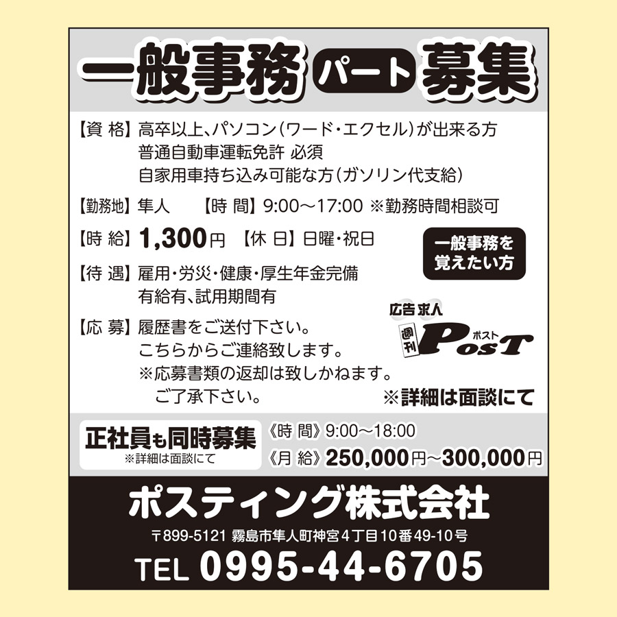 給与: 【正】月給 18万円〜30万円 【ア】日給 8,000円〜13,000円
