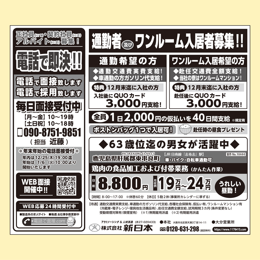 住所: 就業場所/南日本くみあい飼料(株) 志布志工場内 (志布志市志布志町志布志3310)