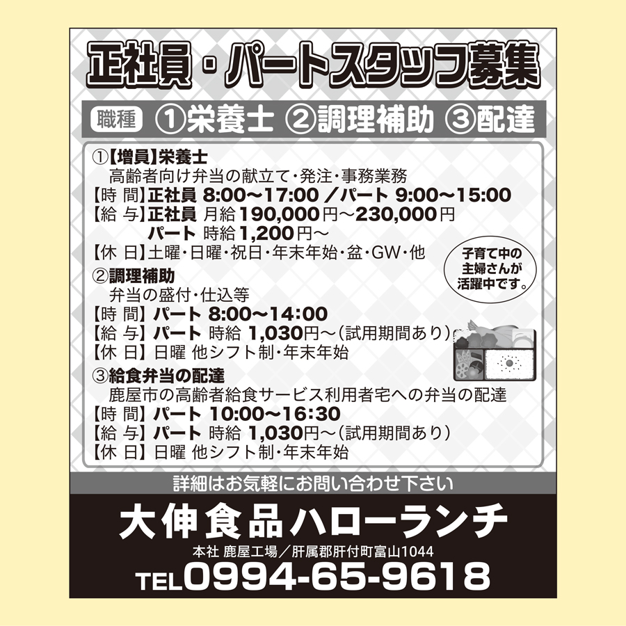職種: ❶食品の加工、パック、梱包等の作業 他