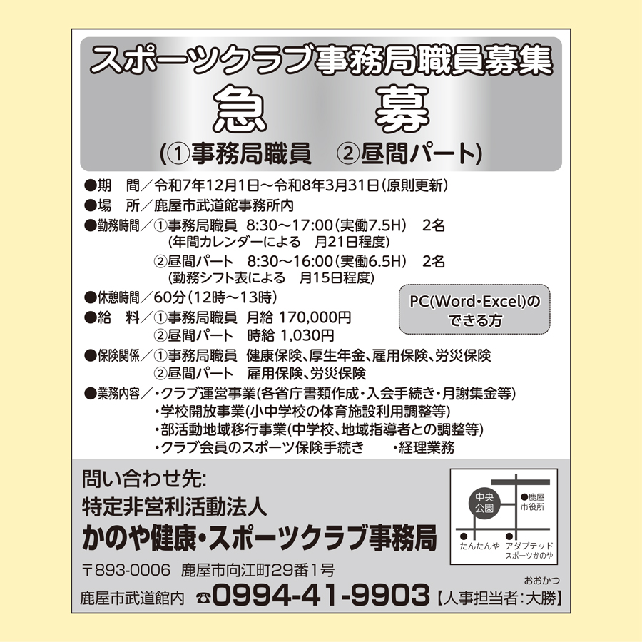 職種: ①事務局職員 ②昼間パート