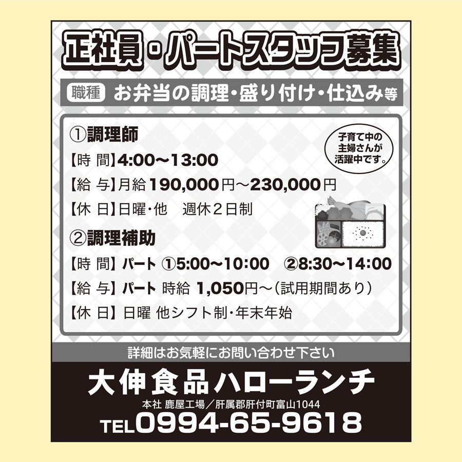 職種: お弁当の調理・盛り付け・仕込み等