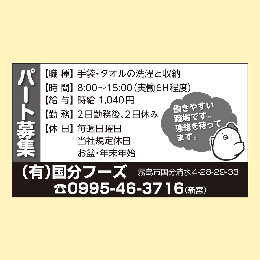 職種: 鶏肉の食品加工および付帯業務(かんたん作業)