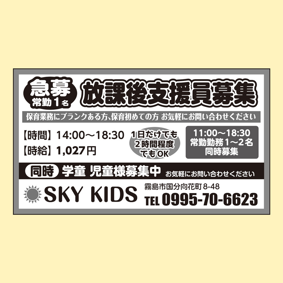 時間: ①13:30~18:00 ②9:00~18:00(社会保険あります)