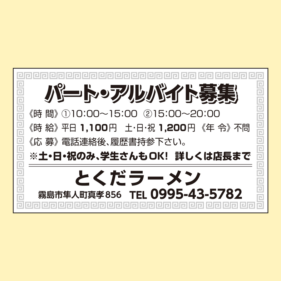 給与: 時給 平日 1,100円 土・日・祝 1,200円
